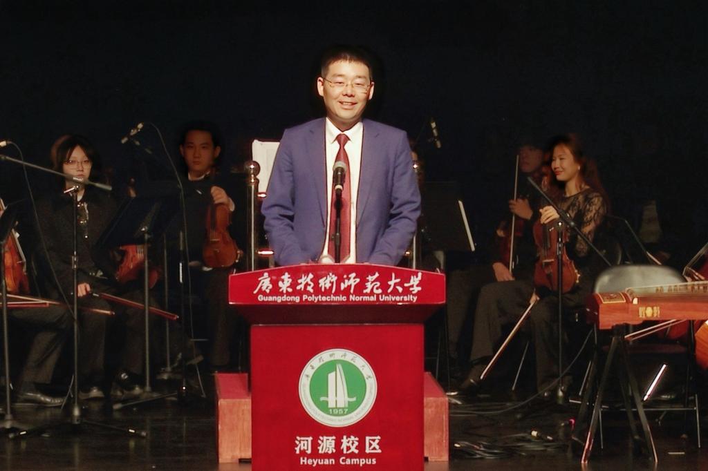 学校党委书记王兵在致辞中代表学校向省委、省政府、省教育厅,河源市委、市政府及社会各界朋友表示衷心感谢,向全体师生员工、离退休老同志和广大校友致以新年祝福。他回顾了2025年学校在党建引领、事业发展、学科建设、科研创新、人才引育、教育教学、服务社会等方面取得的丰硕成果,强调新年音乐晚会是校园文化建设的特色品牌,彰显师生昂扬向上的精神风貌与艺术素养。本次选址河源举办,是学校深入贯彻落实省委、省政府决策部署、服务“百千万工程”的具体行动。学校将以文化艺术为纽带,深度融入地方发展大局,持续深化校地合作,携手谱写高质量发展新篇章。王兵指出,2026年是学校“学科跃升年”,也是全面实施“十五五”规划、决战“申博”的关键之年。学校将以高质量党建为引领,锚定“申博冲百”目标,提升科技创新与服务社会能力,在强国建设与区域发展中展现广师大担当。他号召全体师生以更加解放的思想、务实的作风,共同推动学校事业再上新台阶,并预祝晚会圆满成功。
