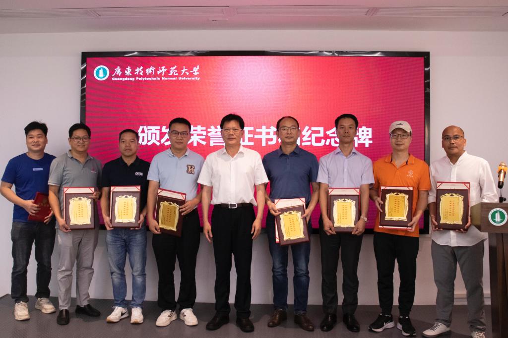 最后,凌靖波、戴青云、李向明、黄秋文、广州校友联络处负责人丁锦文与8位捐赠校友代表共同为校友之家揭牌。