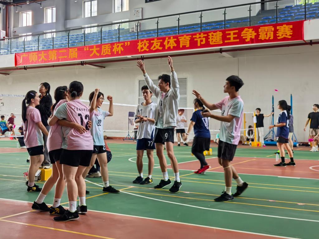 10月25日,广师大第二届“大质杯”校友体育节毽王争霸赛在白云校区学生活动中心顺利完赛。作为本届校友体育节的第二项赛事,活动吸引了来自全省各地的220余名校友和在校生。