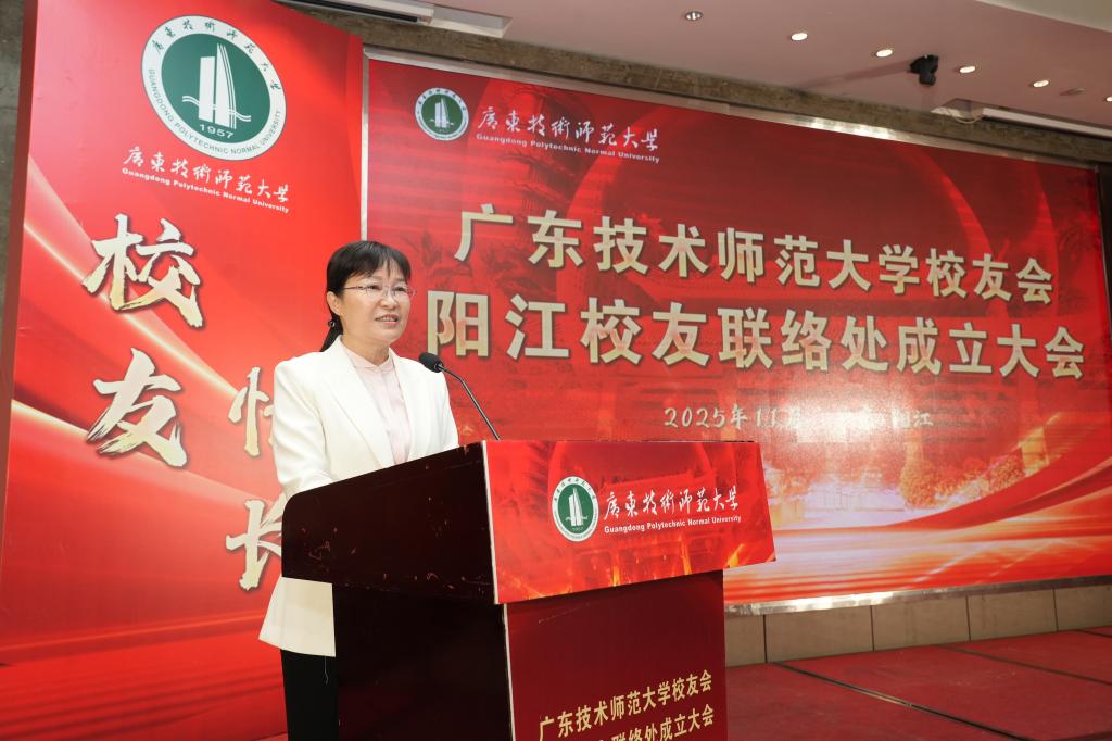 柯燕代表阳江市政府在讲话中对阳江校友联络处的成立表示热烈祝贺,她指出,广师大培养了大批优秀人才,许多校友在阳江各行各业发光发热,为阳江的发展作出了重要贡献。联络处的成立不仅为阳江校友搭建了交流合作的平台,更为校地协同发展开辟了新渠道。希望阳江校友能以联络处为纽带,继续发挥专业优势,积极投身阳江的产业升级、科技创新等领域,同时欢迎广师大更多科研成果在阳江转化落地,实现校地互利共赢。